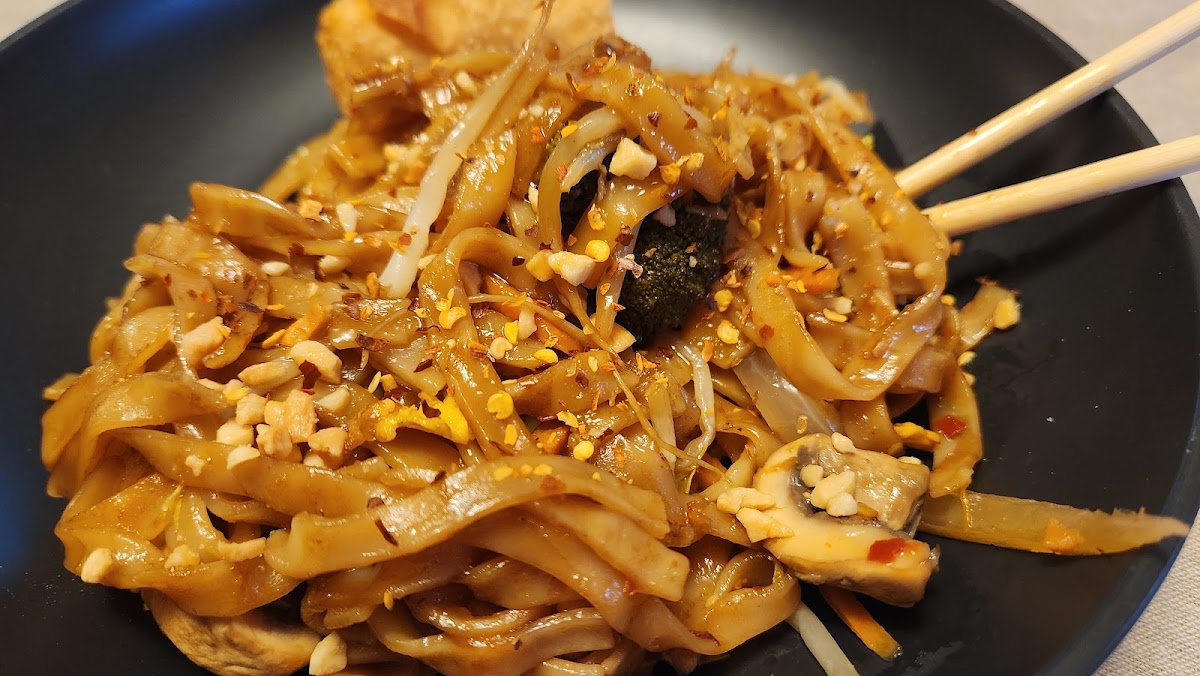 I love this place. I tried their pad Thai (pictured). Flavor was really good, although the menu described it as "spicy" when I hardly detected heat at all. Still delicious. Egg rolls were a little soggy, but it's hard to get that right with takeout. Love their wonton soup: so savory and satisfying. There are some vegetarian options. And huge portions for the value; I've had leftovers for days. Plus, the hostess was extremely friendly to my toddler and gave her extra fortune cookies. Fast service. This place is a regular stop for us.